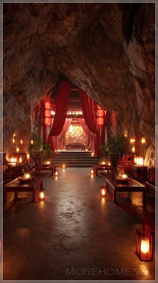 Toàn bộ không gian mang một vẻ đẹp siêu thực, như thể đây không phải là một phần của thế giới chúng ta đang sống. Mọi chi tiết đều được tạo nên với độ chính xác và chất lượng cực cao, từ những vân đá tinh tế trên tường hang đến từng đường chỉ trên bức màn đỏ thắm. Đây không đơn thuần là một hang động được trang trí - đây là một thế giới khác, một không gian thiêng liêng nơi ranh giới giữa thực tại và ảo ảnh trở nên mơ hồ.