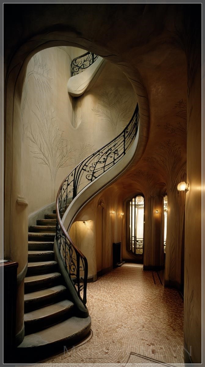 Giữa nhịp sống hiện đại tấp nập, những công trình Art Nouveau vẫn đứng vững như một minh chứng cho vẻ đẹp vượt thời gian. Cầu thang uốn lượn mà tôi đang chiêm ngưỡng chính là hiện thân hoàn hảo của trường phái nghệ thuật này - nơi mà đường nét tự nhiên được tôn vinh theo cách tinh tế nhất.