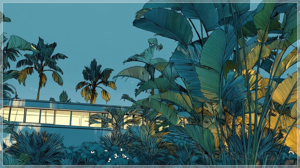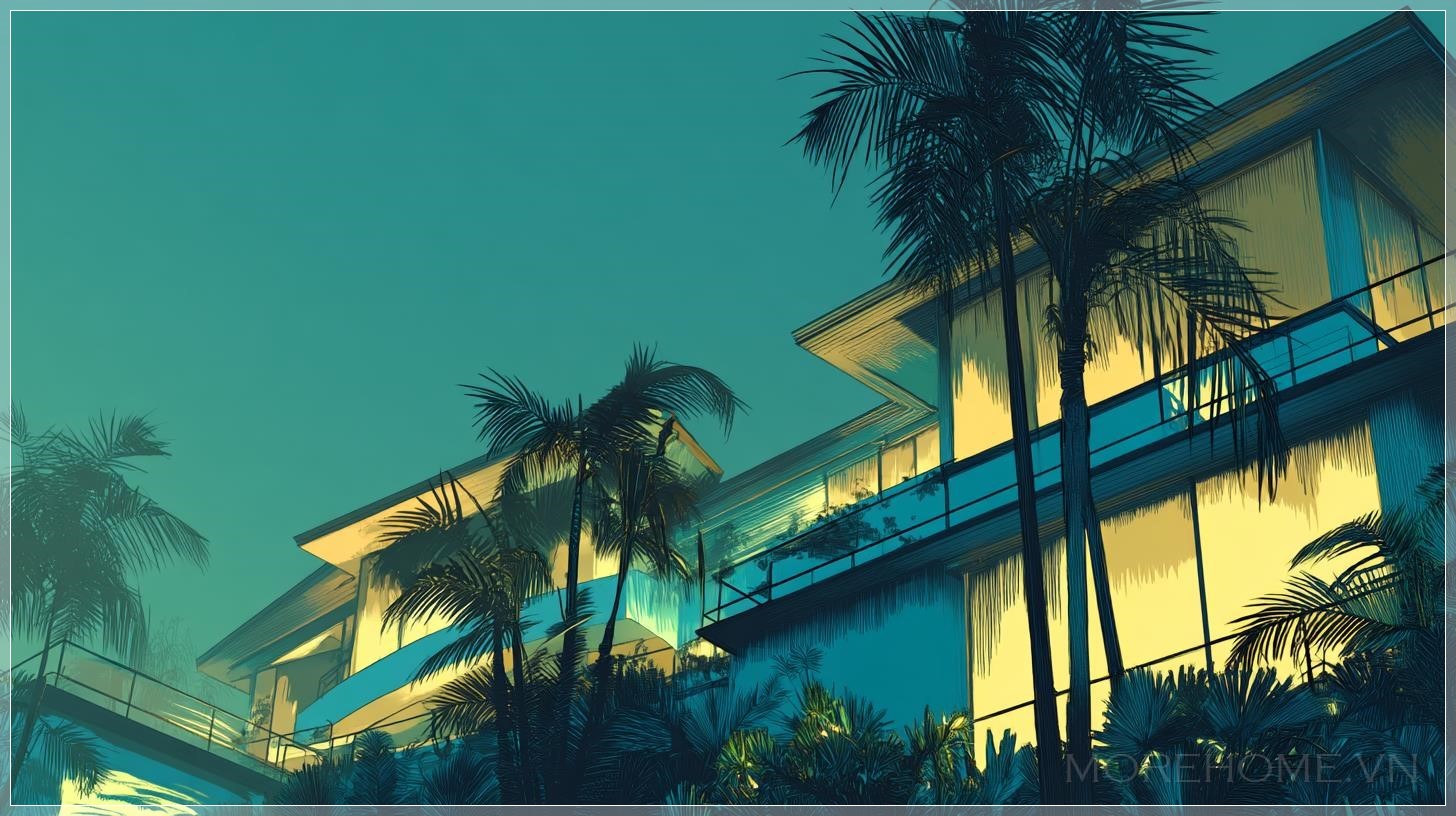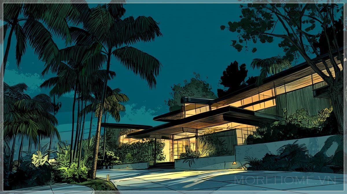 Phong cách kiến trúc Mid-Century Modern không chỉ đơn thuần là một trào lưu thiết kế, mà còn là biểu tượng của một thời đại vàng son trong lịch sử kiến trúc Mỹ. Những căn nhà này, với những đường nét sạch sẽ, góc cạnh rõ ràng và việc sử dụng kính làm vật liệu chính, đã trở thành biểu tượng của sự hiện đại và tinh tế. Khi được bao quanh bởi những cây cọ nhiệt đới và thảm thực vật xanh mướt, chúng tạo nên một sự tương phản tuyệt đẹp giữa nét hiện đại của con người và vẻ đẹp hoang sơ của thiên nhiên.