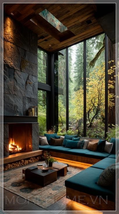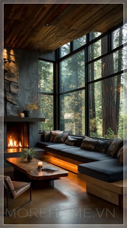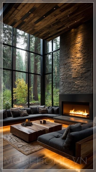 Sự kết hợp giữa không gian chìm, lò sưởi hiện đại, nội thất linh hoạt và tầm nhìn ra khu rừng tạo nên một trải nghiệm sống hoàn toàn mới. Đây là nơi mà ranh giới giữa trong và ngoài, giữa tự nhiên và kiến trúc, giữa công nghệ và truyền thống được xóa mờ. Người sử dụng không gian này không chỉ đơn thuần là cư trú, mà là đang sống trong sự hòa quyện hoàn hảo giữa tiện nghi hiện đại và vẻ đẹp tự nhiên.