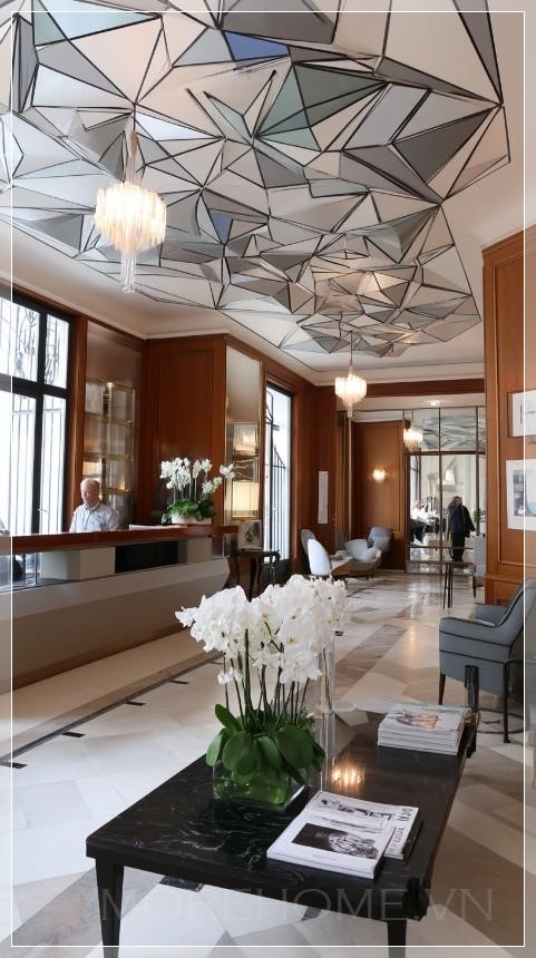 Bước chân vào sảnh lễ tân của khách sạn boutique nhỏ xinh nằm trên con phố lát đá cuội cổ kính ở khu Marais, bạn như được đưa trở về thập niên 1920 - thời kỳ hoàng kim của phong cách Art Deco tại Paris. Ánh sáng nhẹ nhàng từ những chiếc đèn chùm pha lê hình hình học rọi xuống, tạo nên những vệt sáng lung linh trên nền đá cẩm thạch đen bóng loáng, mang đến cảm giác như đang sải bước trong một bộ phim cổ điển về thủ đô ánh sáng.